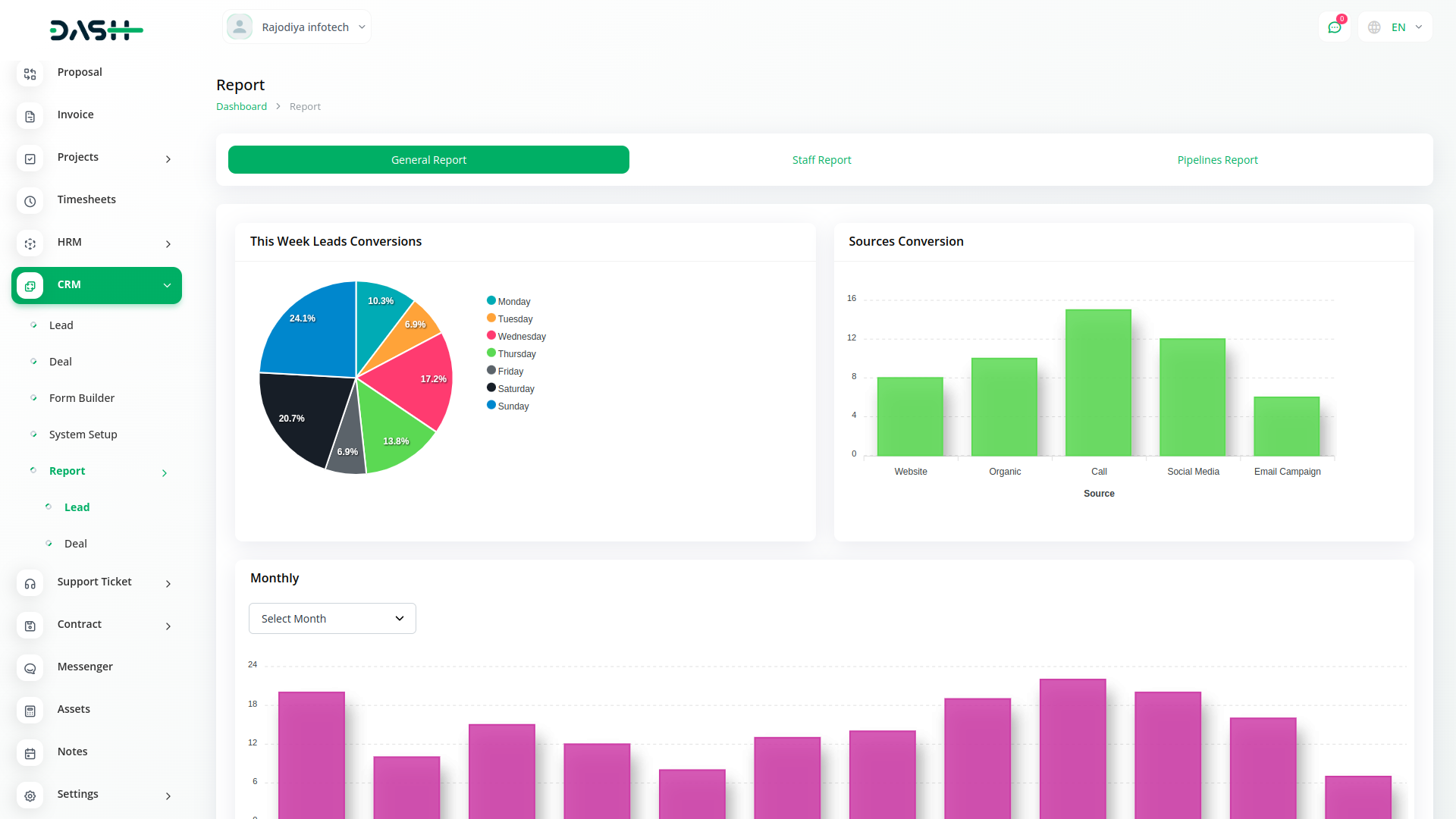 Get an actionable analysis of all your leads, deals, users, invoices, and products - in one interactive dashboard. Create and implement effective business plans, set a maximum number of deals, payment options and do so much more.