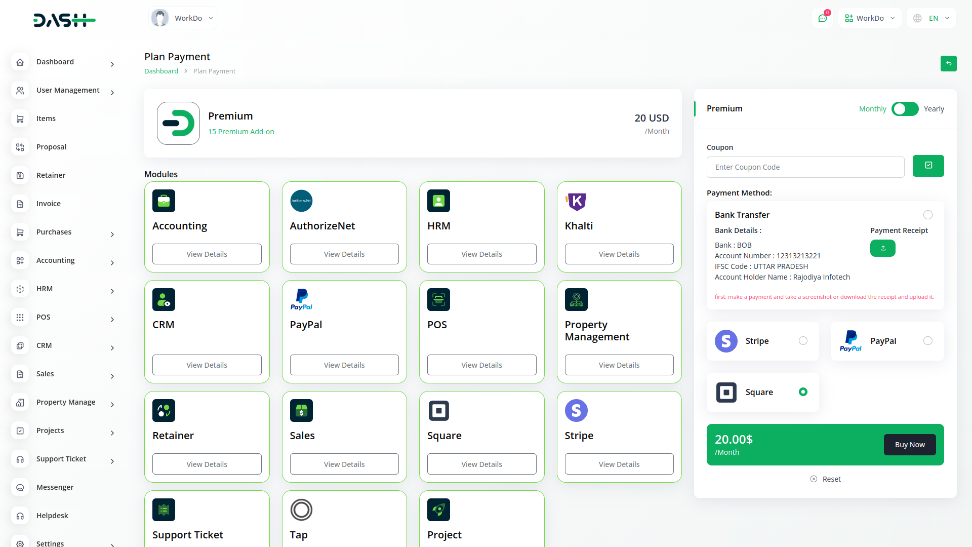 Access over Premium Add-ons for Accounting, HR, Payments, Leads, Communication, Management, and more, all in one place!